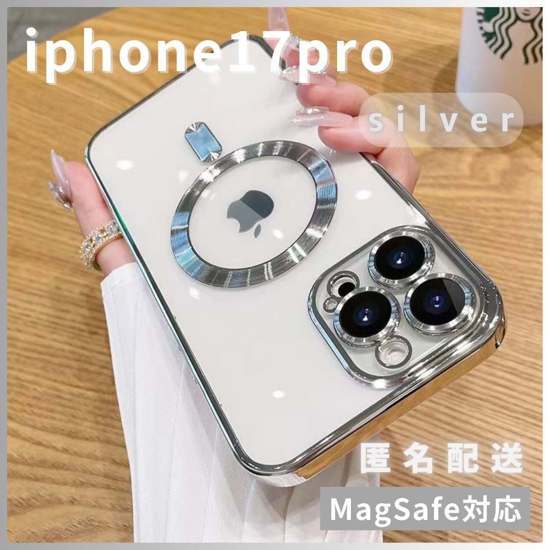 - iphone17pro ケース マグセーフ MagSafe対応 ワイヤレス充電対応 キラキラ 可愛い 韓国 新品 人気 シルバー