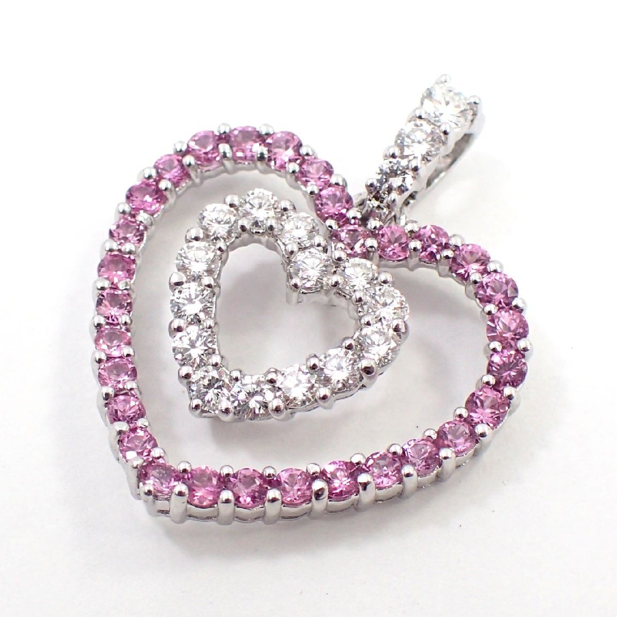 > 【吉村質店】ポンテヴェキオ750サファイア1.70ctダイヤモンド1.05ctハートモチーフペンダントトップ7.9gカード鑑別付