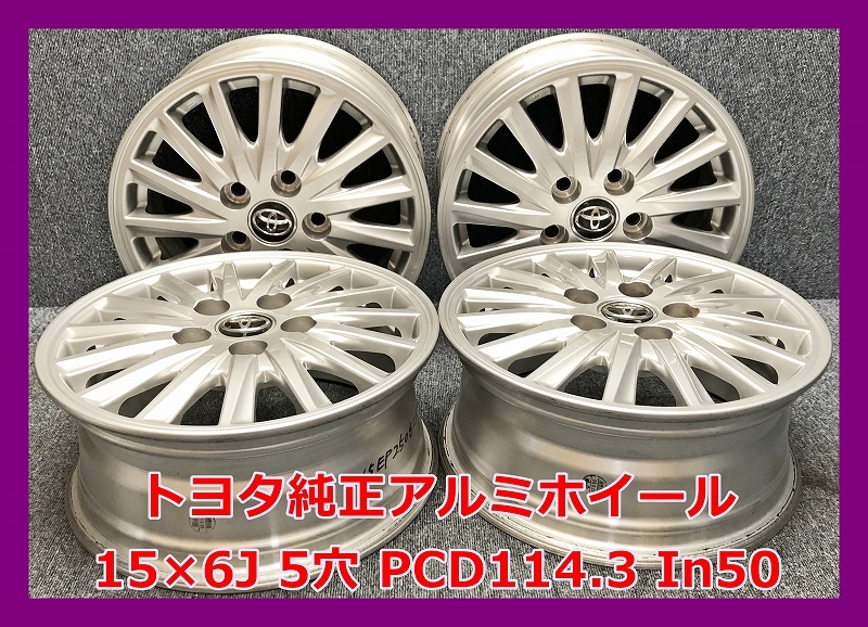 - ★15インチ トヨタ 純正 中古 アルミホイール 4本 5穴 PCD:114.3 IN50★