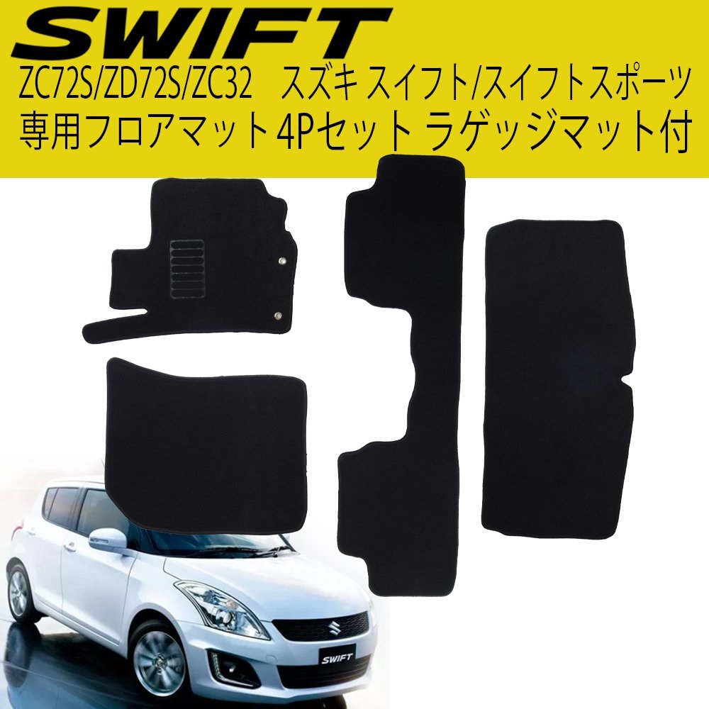 > フロアマット 4点セット 黒 スズキ スイフト/スイフトスポーツ ZC72S/ZD72S/ZC32S ラゲッジマット付 カーマット カーフロアマット 4P