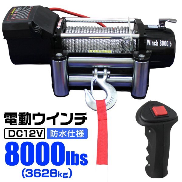 - 電動ウインチ 車両用 12v 8000LBS 3629kg 電動ホイスト DC12V 運搬用チェーンブロック