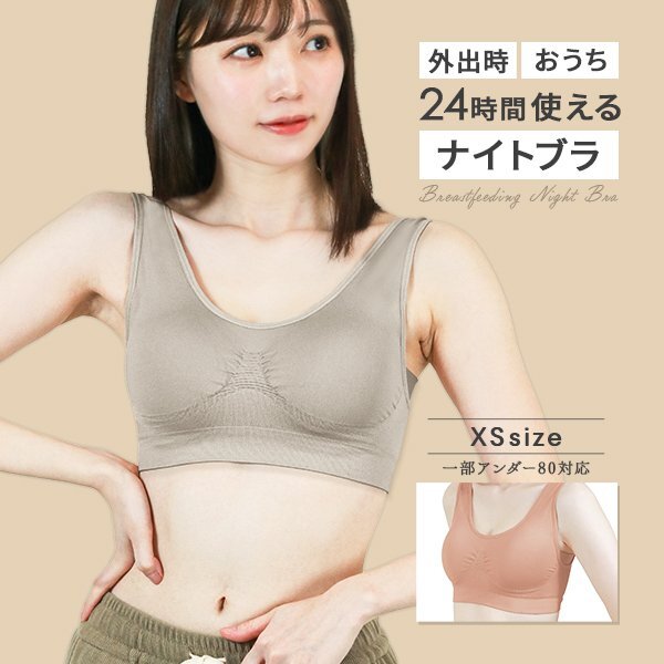 > ナイトブラ 育乳ブラ XSサイズ 昼夜兼用 ノンワイヤー 脇高 シームレス バストケア 補正下着 スポブラ ヨガウェア姿勢矯正 ピンクベージュ