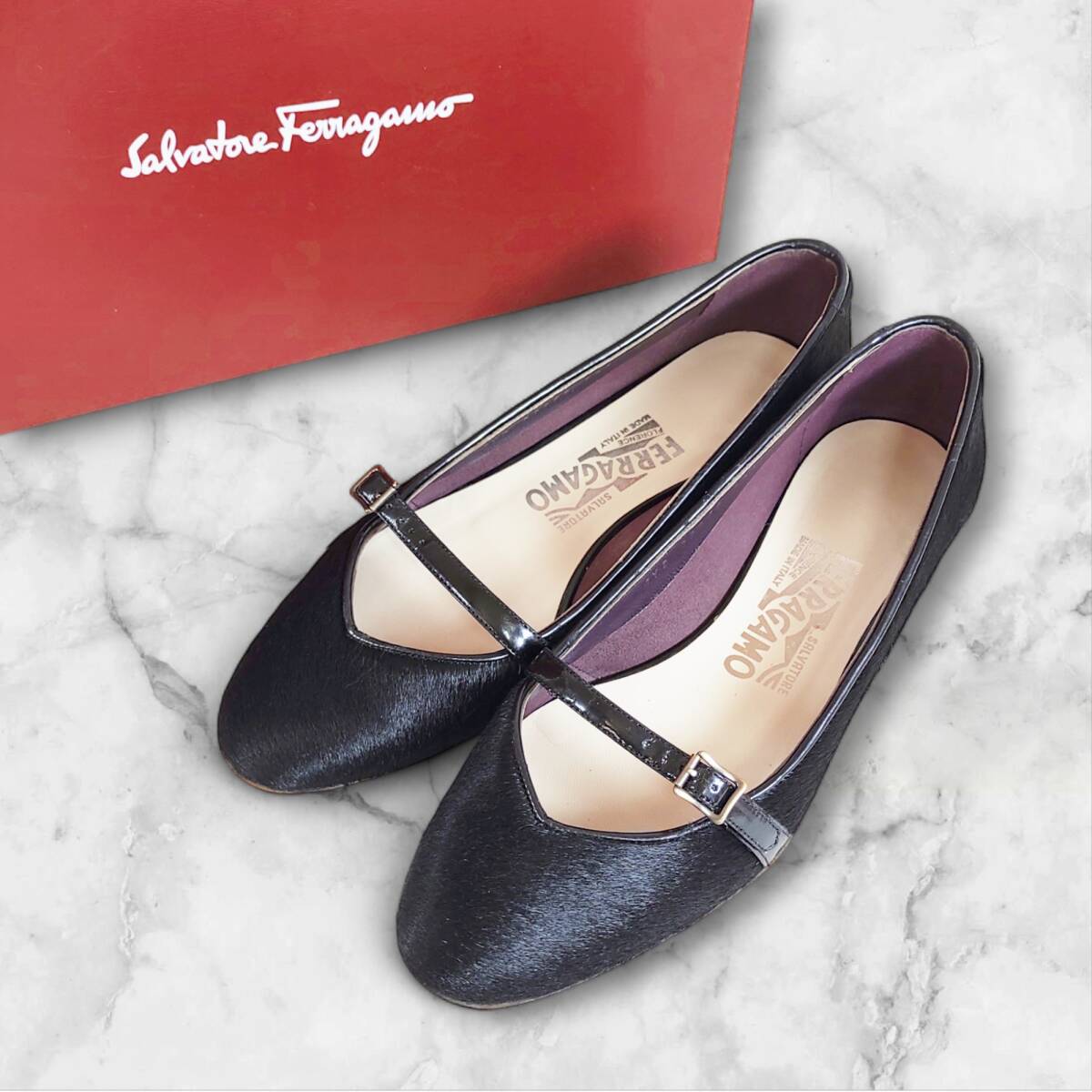 - フェラガモ|オードリー|ハラコ|5C|黒|i1709