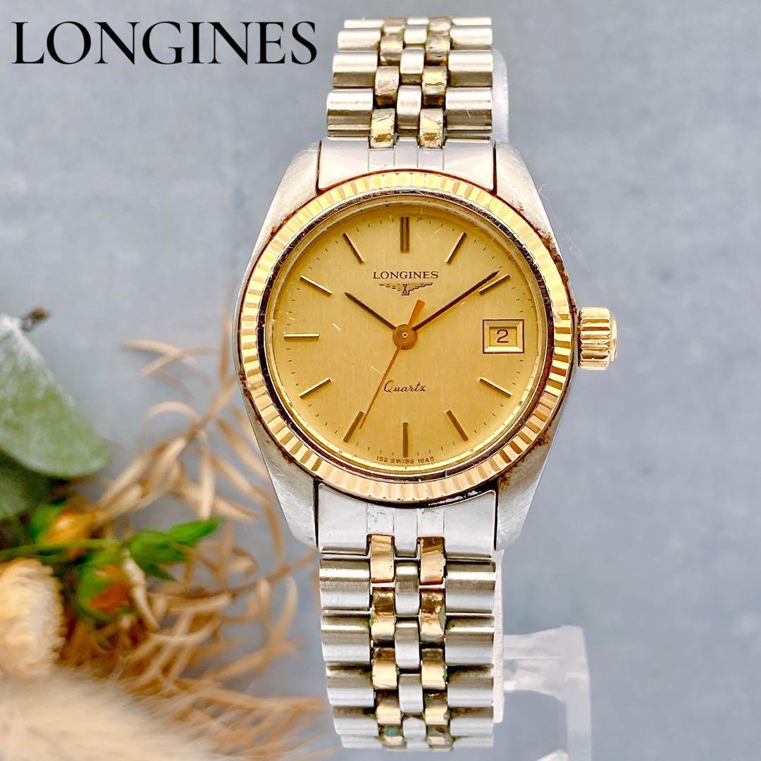 - 稼動品LONGINES レディース腕時計 フルーテッドベゼル ゴールド デイト ロンジン コンビベルト シルバー 3針 ヴィンテージ