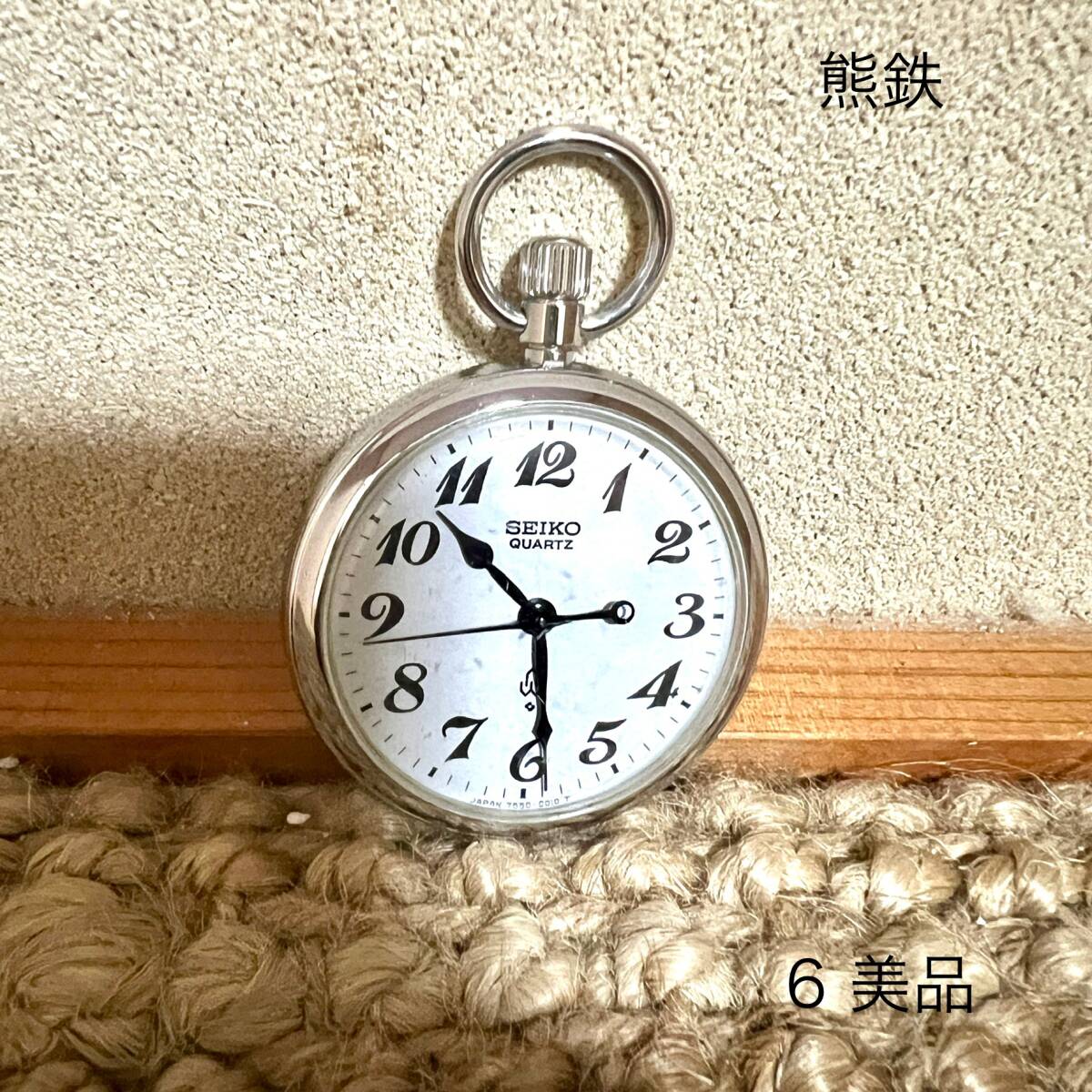 - 1006 SEIKO セイコー 懐中時計 鉄道時計 クォーズ式 ホワイト文字盤 動作有 熊鉄 昭 78 現状ジャンク