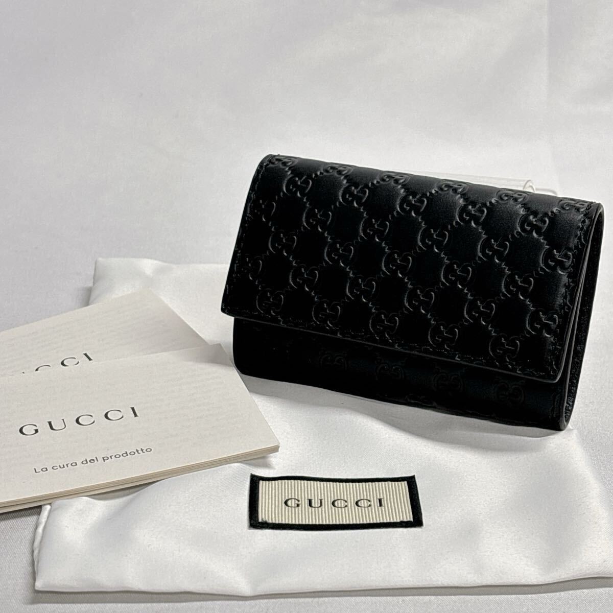 - 美品!GUCCI グッチ マイクログッチシマ 6連 キーケース 150402 GG柄 レザー ブラック 黒 メンズ レディース【1282】