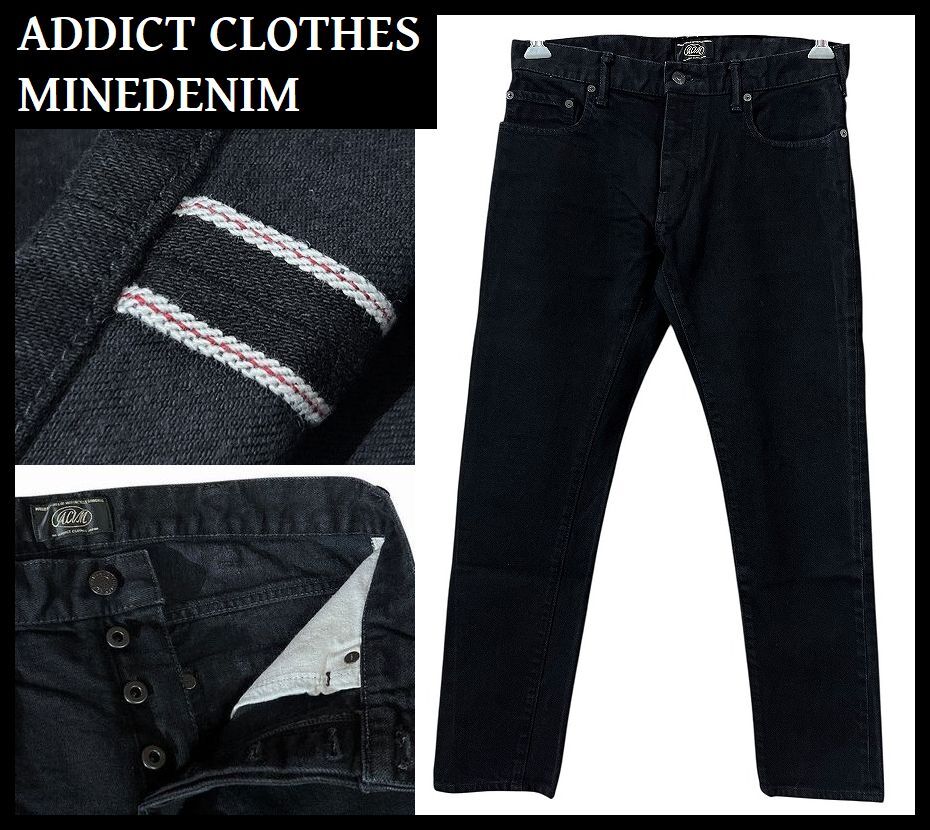 - 送無 希少 20AW ADDICT CLOTHES × MINEDENIM アディクトクローズ マインデニム ストレッチ スリム テーパード セルビッチ ブラック デニム