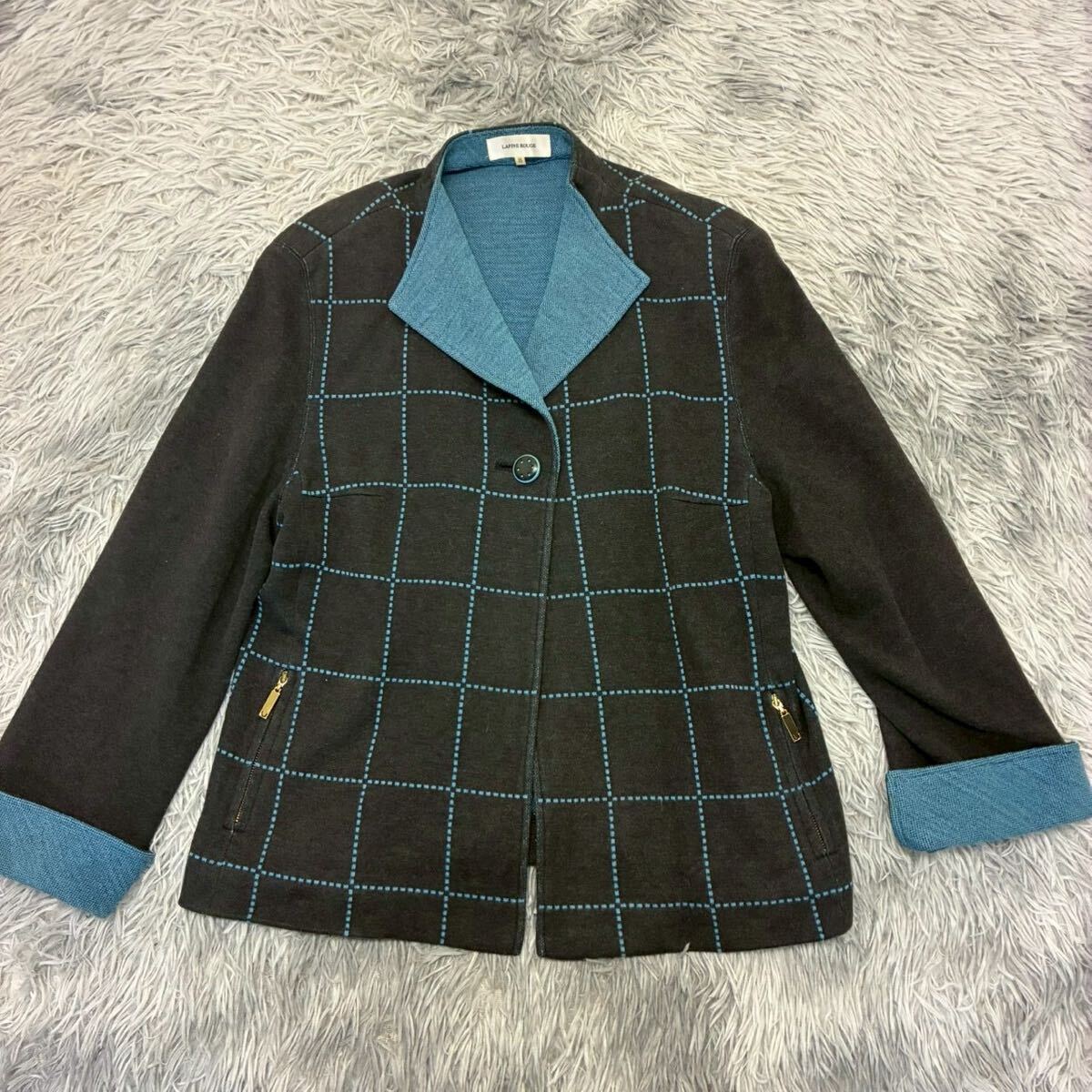 - LAPINE ROUGE ラピーヌルージュ ジャケット ウール混 グレー ブルー サイズ15 ビッグサイズ
