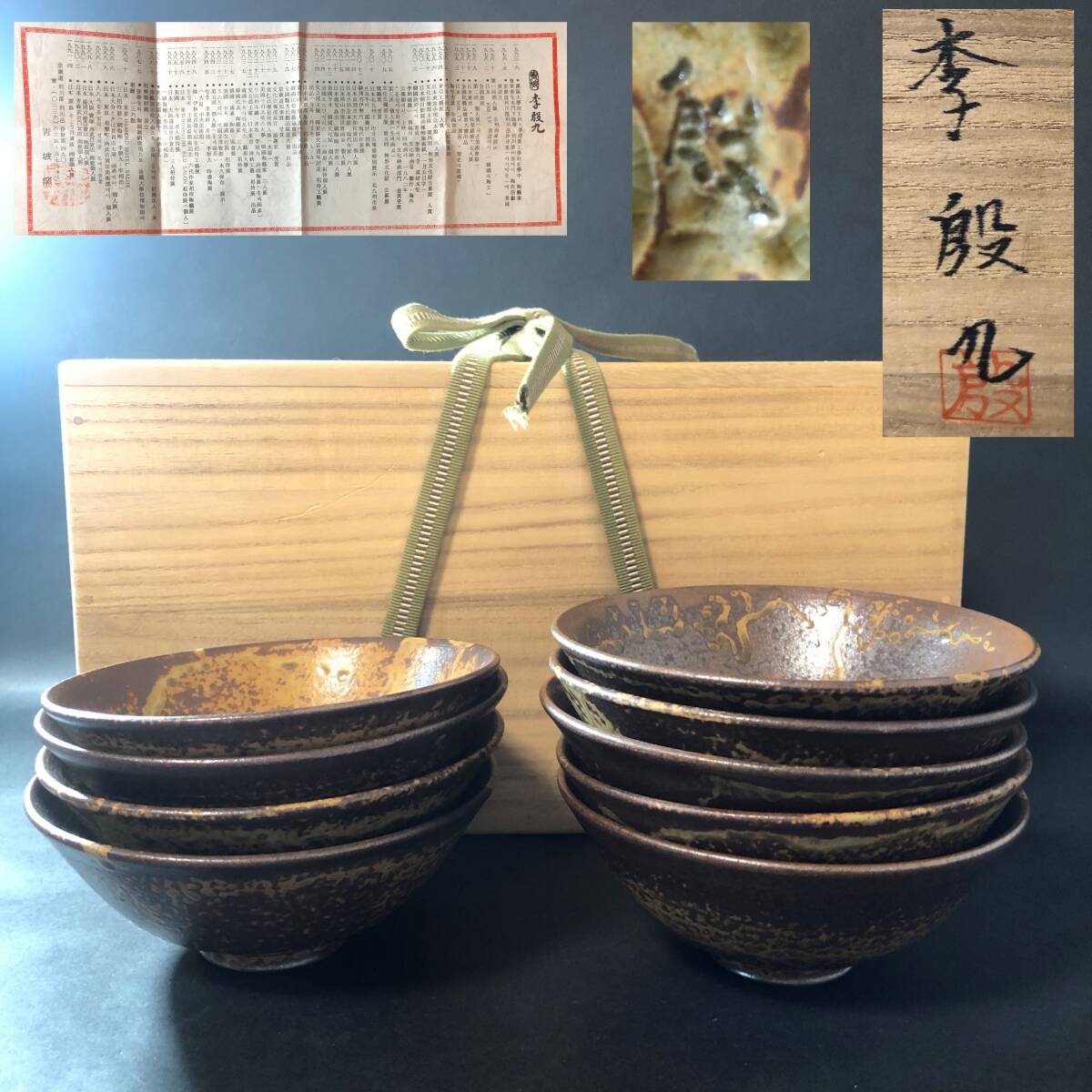 - 茶道具 数茶碗 9客 韓国 青坡窯 李殷九作 伊羅保釉薬 数茶碗 茶道具 韓国 人間国宝 共箱 栞付 韓国陶芸