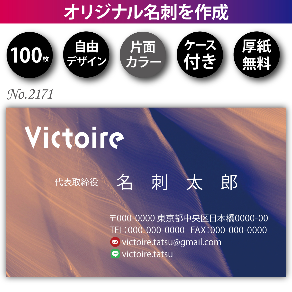 - 名刺 名刺作成 名刺印刷 100枚 片面 フルカラー 紙ケース付 No.2171