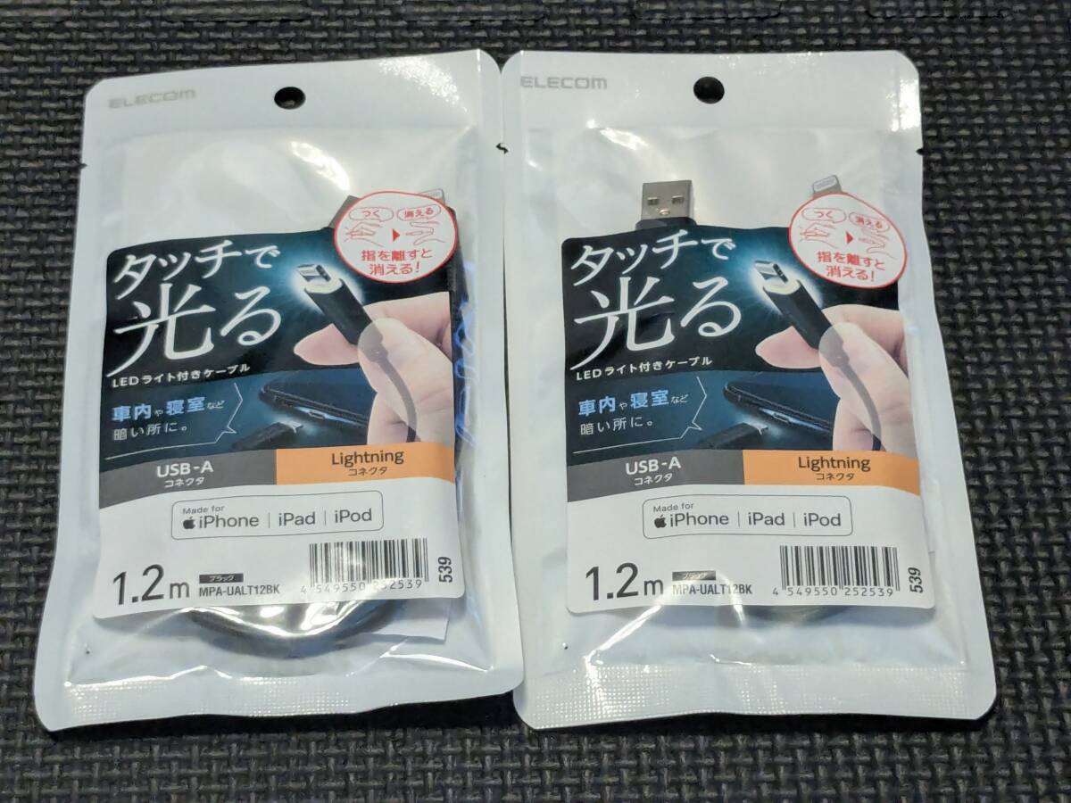 > ◎0710u0733 エレコム 充電ケーブル ライトニングケーブル 1.2M LEDライト付(タッチセンサー機能) ブラック MPA-UALT12BK 2個セット