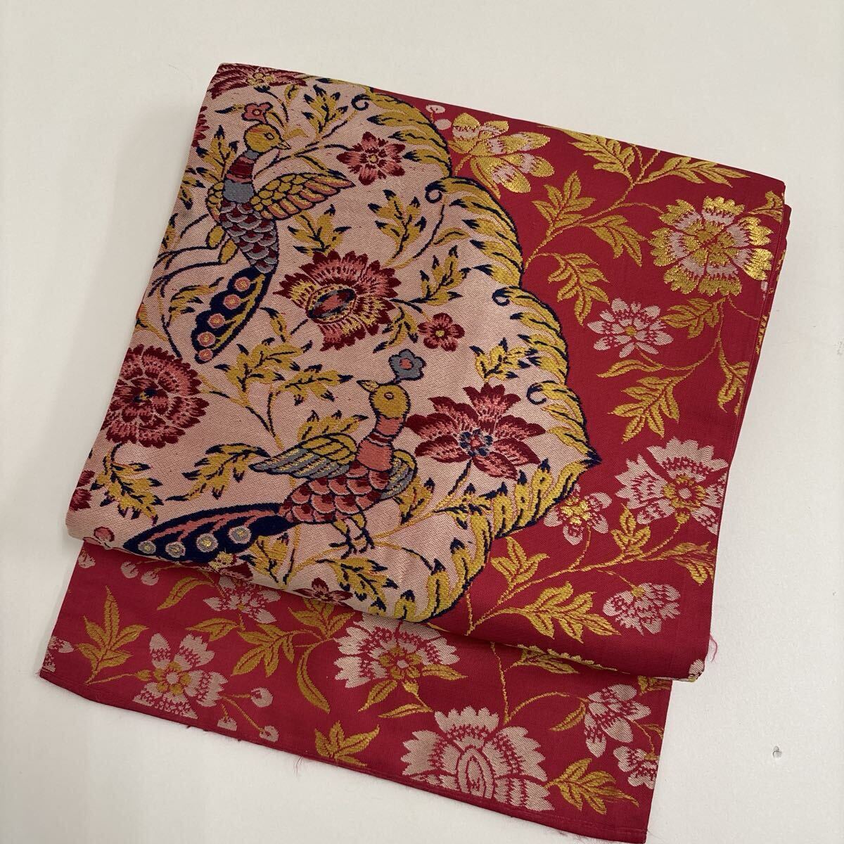 - アンティーク名古屋帯 美しい鳥 花唐草 正絹 W-4626