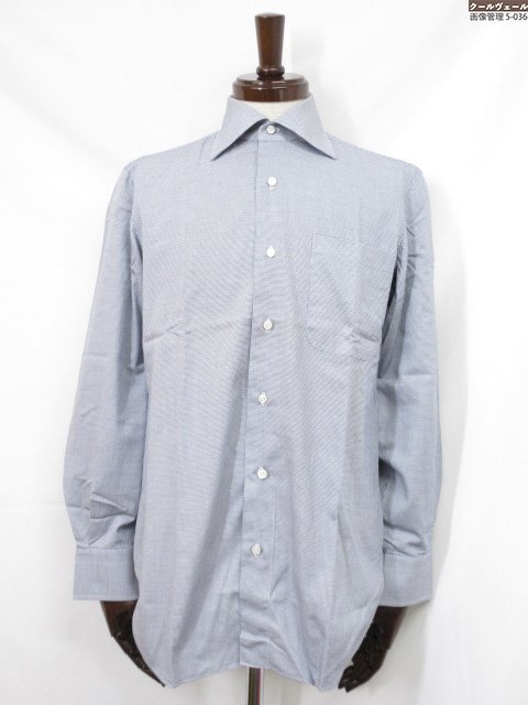 - 超美品【LUIGI BORRELLI ルイジボレッリ】コットン100% ワイドカラー 織柄 長袖シャツ (メンズ) size37 ネイビー系 伊製 ◇17MK6171◇