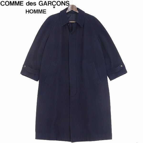 > 【HA601】80's◆COMME des GARCONS HOMME コムデギャルソン オム AD1988 ウール ステンカラー ロング コート 紺 ネイビー