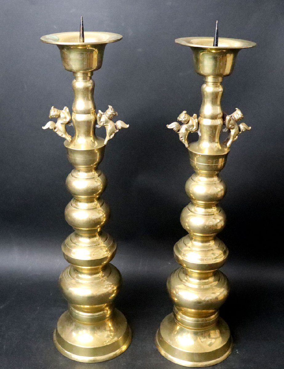 ・商品は 大柄 真鍮製/燭台/一対 ろうそく 獅子掛け 寺院 分解可能 高さ45㎝ 綺麗 です。