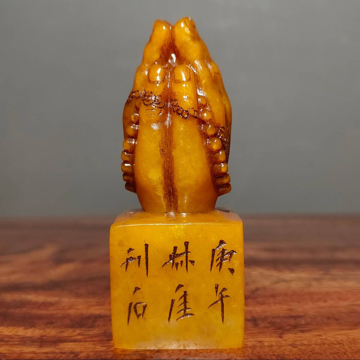 - 蔵友旧蔵出 寿山石 田黄石 細密彫 一念之間 仏手印章 文房具 文案置物 書道品 稀少物品 置物 賞物 中国時代美術品