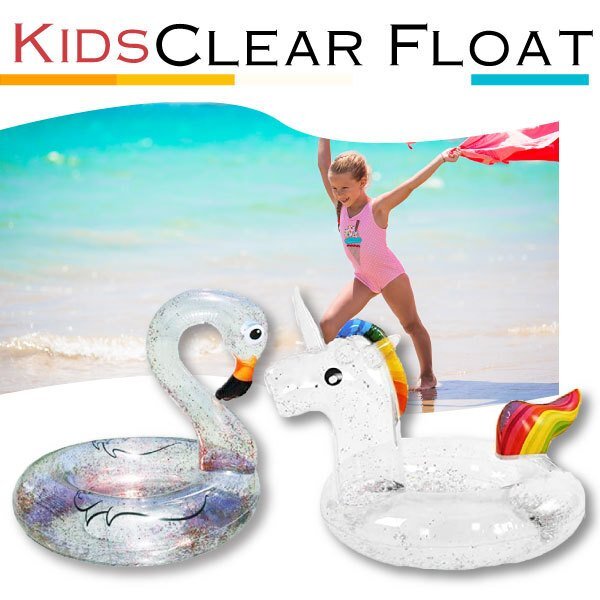 - 送料無料 クリアフロート 子供用 ユニコーン フラミンゴ 浮き輪 浮輪 SNS Instagram 5歳~ ナイトプール キラキラ ラメ入り