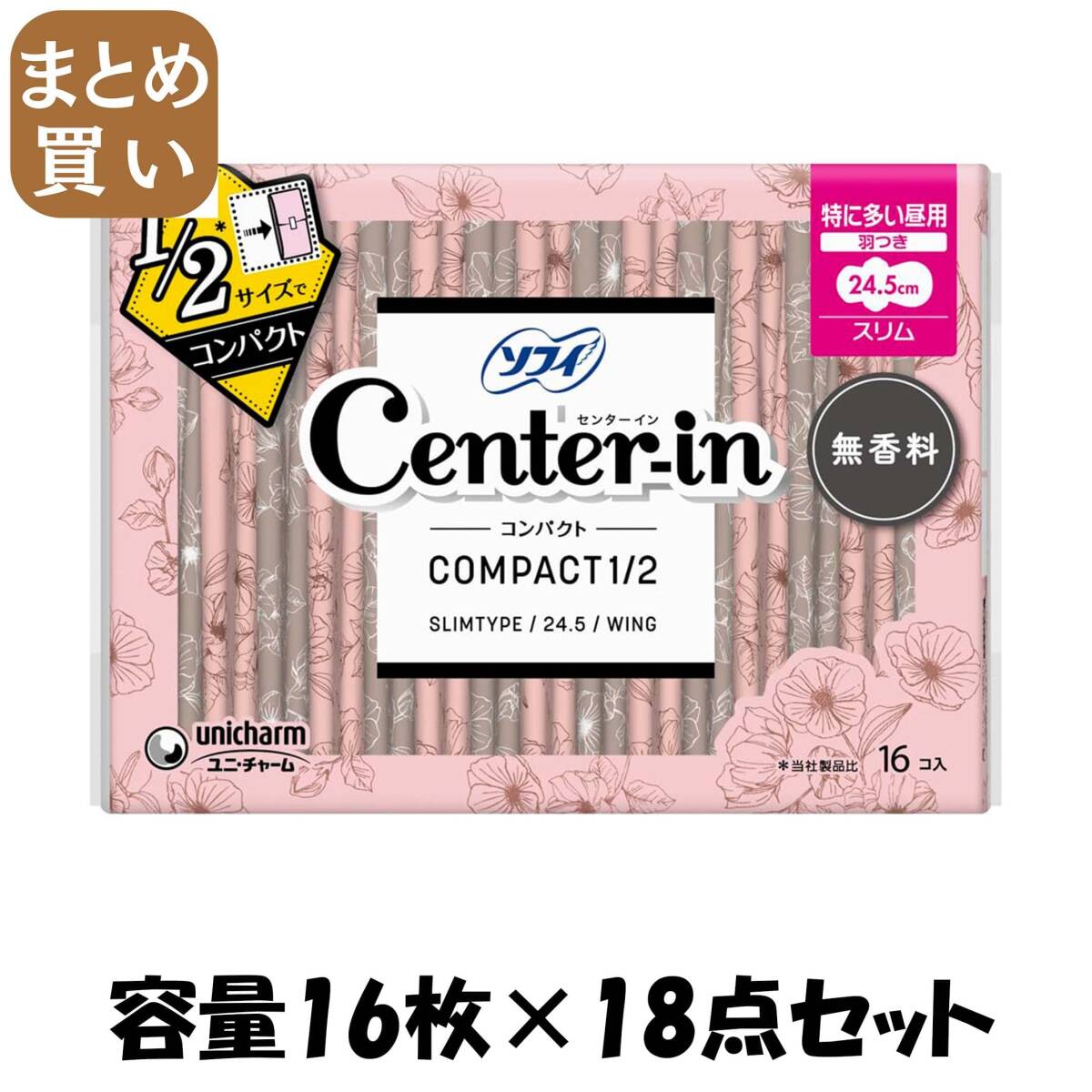 - 【まとめ買い】センターインコンパクト 1/2 無香料 特に多い昼用 16枚 容量16枚×18点セット 生理用品