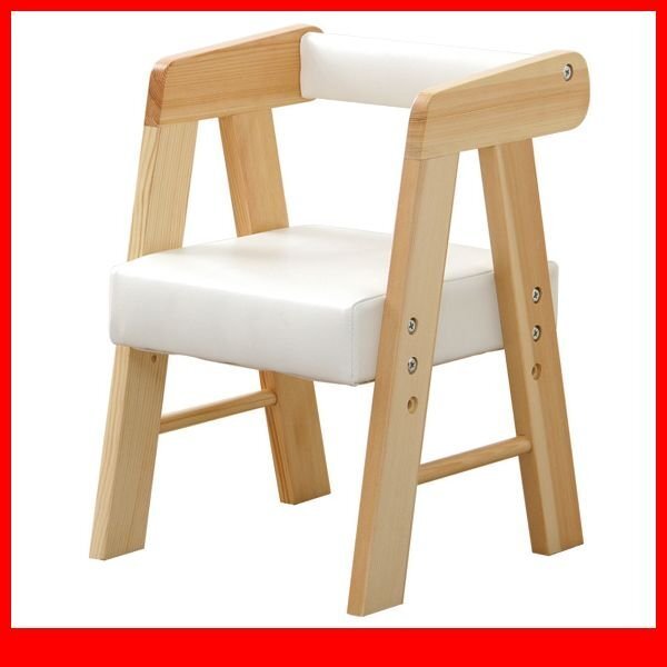 - ベビー キッズ★ロータイプ キッズチェア 椅子/2段階高さ調整 天然木 PVC座面 コンパクト 軽量 手入れ簡単/ホワイト/a4