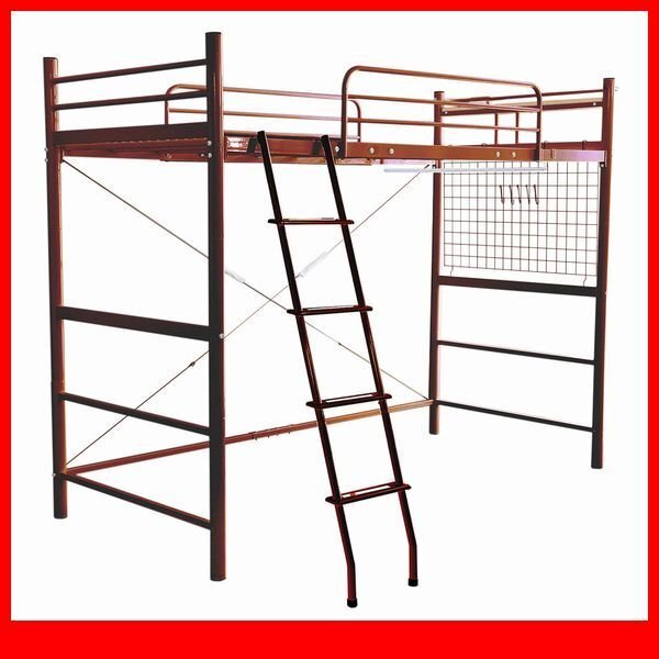 - ロフトベッド★宮棚 コンセント付き ロフトベッド/シングル/耐荷重120kg/高さ調整可/収納に便利 ネット ハンガーパイプ付き/ブラウン/a1