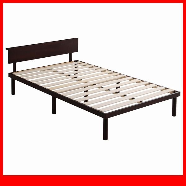 > ベッド★新品/宮付き パイン材高さ2段階調整脚付きすのこベッド セミダブル/通気性 耐久性 頑丈 低ホルムアルデヒド/ブラウン/a1
