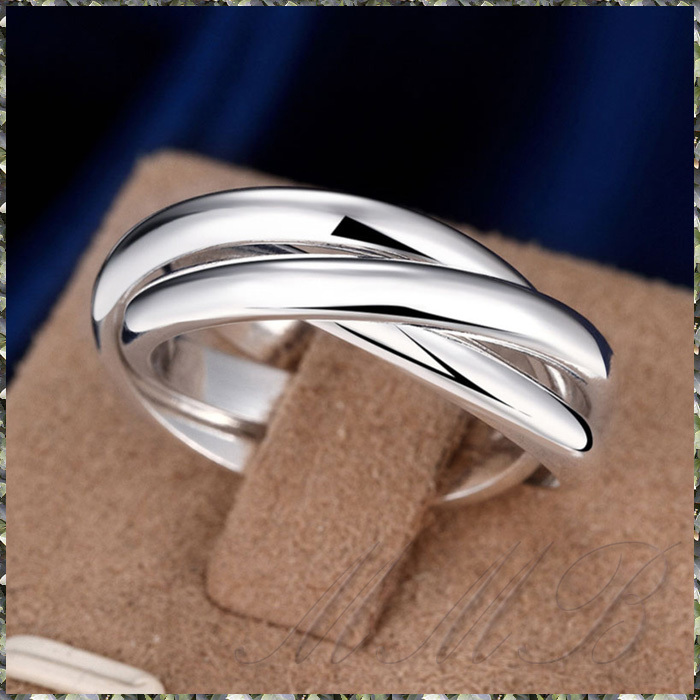 > [RING] Silver Plated High Polished 3 Circles Trinity ハイポリッシュ 3連 トリニティ エレガント シルバー リング 8号 (5.4g) 送料無料