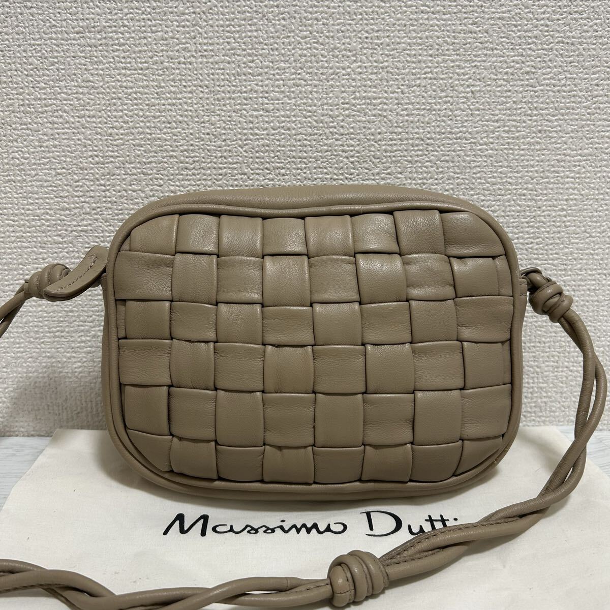 > Massimo Dutti マッシモデュッティ ドゥッティ レディース ショルダーバッグ カゴバッグ 籠 ポシェット 本革 羊革 ラムレザー ベージュ
