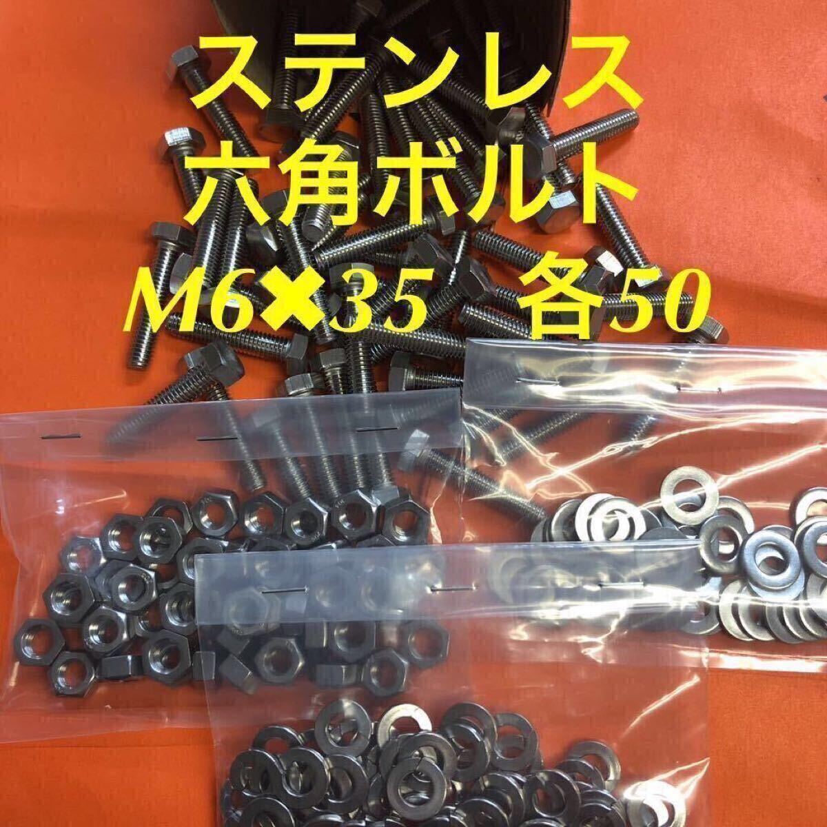 > ★送料無★ステンレス 六角ボルト M6×35 ナット・丸ワッシャー・スプリングワッシャー 各50個 ステン六角ボルト