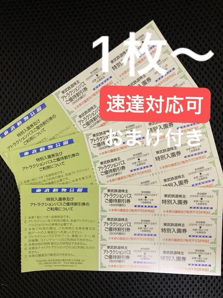 - 1枚〜東武動物公園 株主優待 入場券 東武鉄道株主優待券 東武動物園 速達対応あり おまけ付き