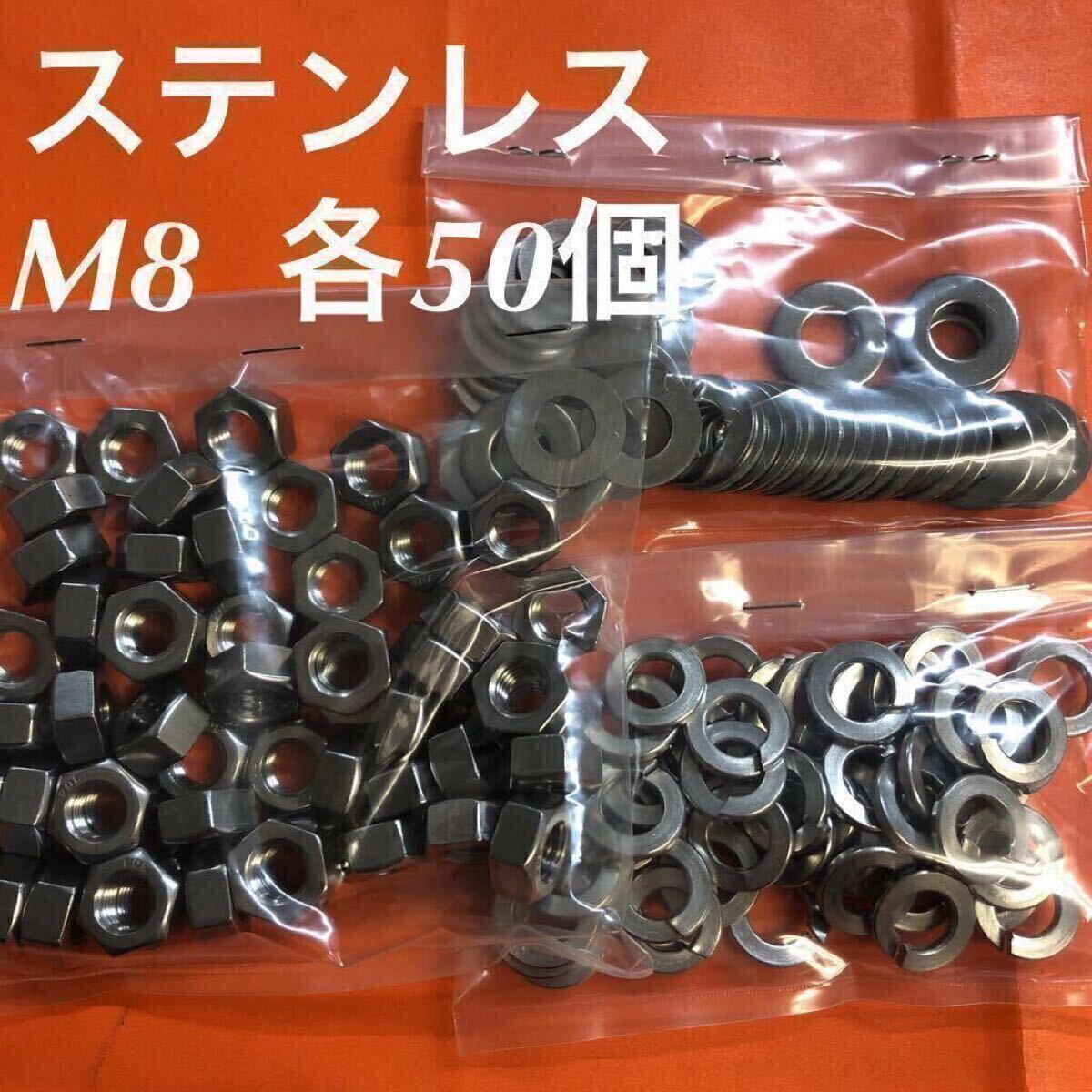 - ★送料込み★ステンレス M8 ナット・平ワッシャー・スプリングワッシャー 各50個 ステン