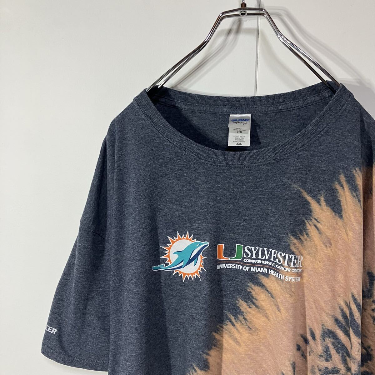 > 古着 アート プリント クルーネック 半袖 Tシャツ 大きいサイズ 一点物 ダークグレー ブラウン 3XL
