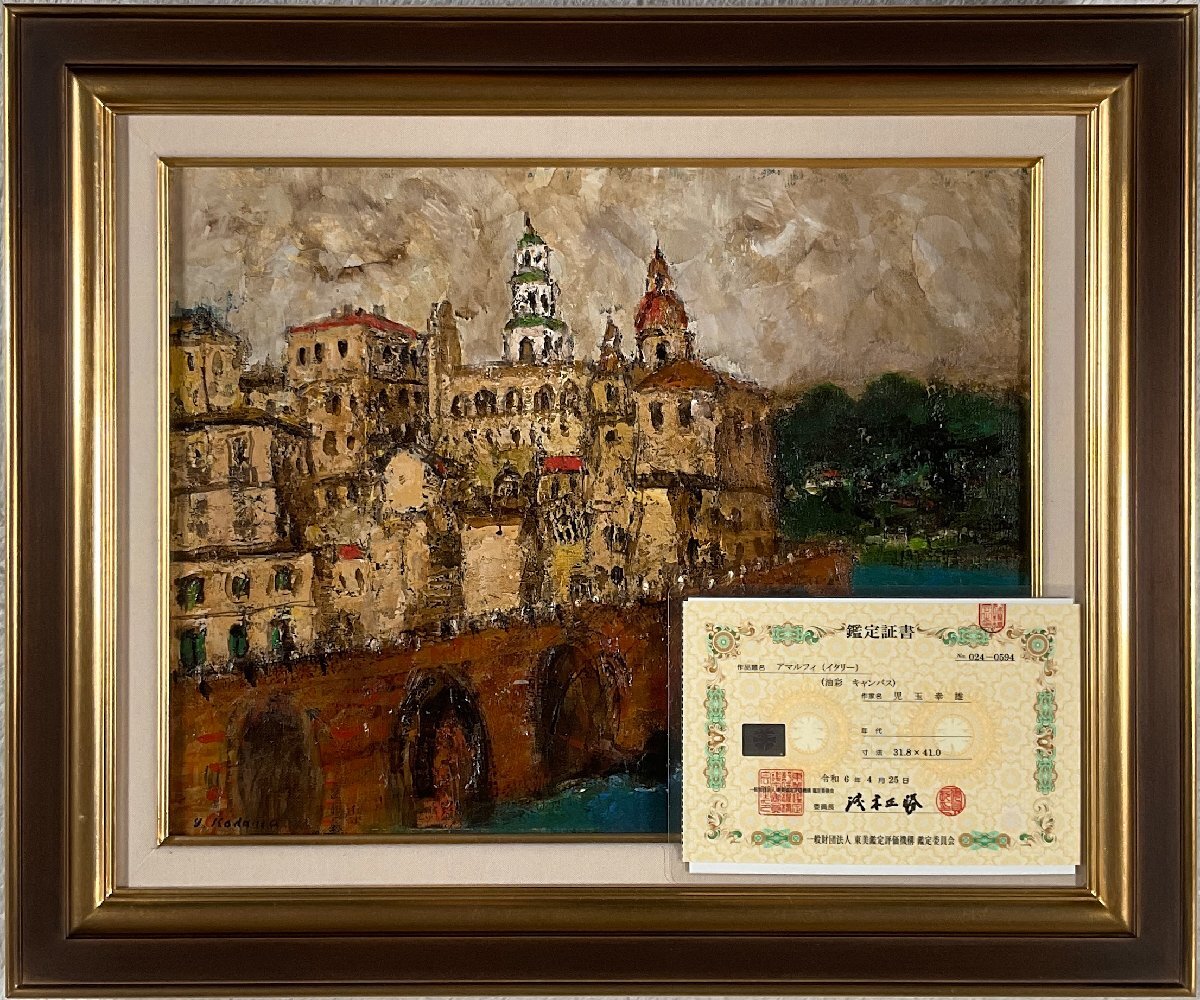 - 【代理出品】児玉幸雄(1916-1992)●東美鑑定証書付『アマルフィ(イタリー)』油彩6号●元二紀会委員物故巨匠