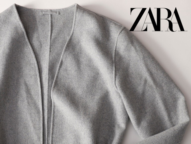 > ★中古品★ZARAMAN ザラマン★メンズノーカラーボタンレスセミロングコート★Mサイズ【6107/356】ライトグレー薄灰【本物保証】