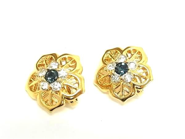 - ■新品同様■ NINA RICCI ニナリッチ カラーストーン クリップ式 イヤリング アクセサリー レディース ゴールド系×グリーン系 DK4295