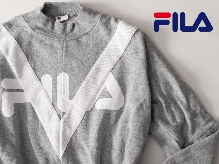 > ★中古品★FILA フィラ★オーバーサイズ裏起毛ハイネックビッグロゴ スウェットトレーナー★M【FM9687】グレー灰【本物保証】美品