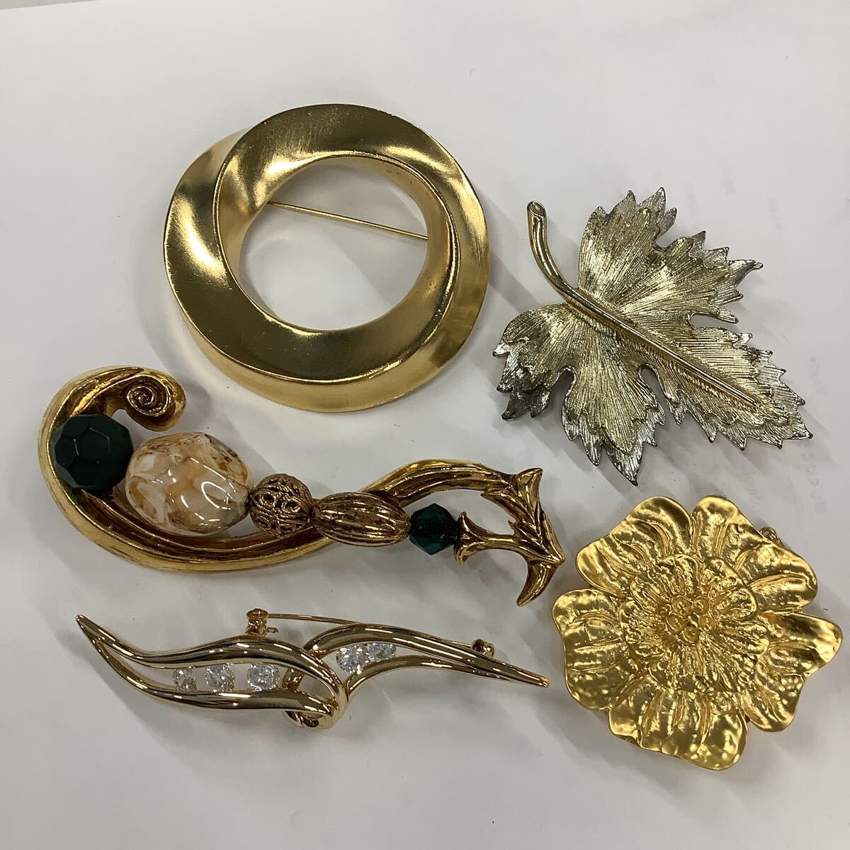 - ●ハ1791H◎ゴールドカラー・リーフ・大きめなど デザイン 色々 ブローチ・スカーフクリップなど まとめて◎送料込み◎
