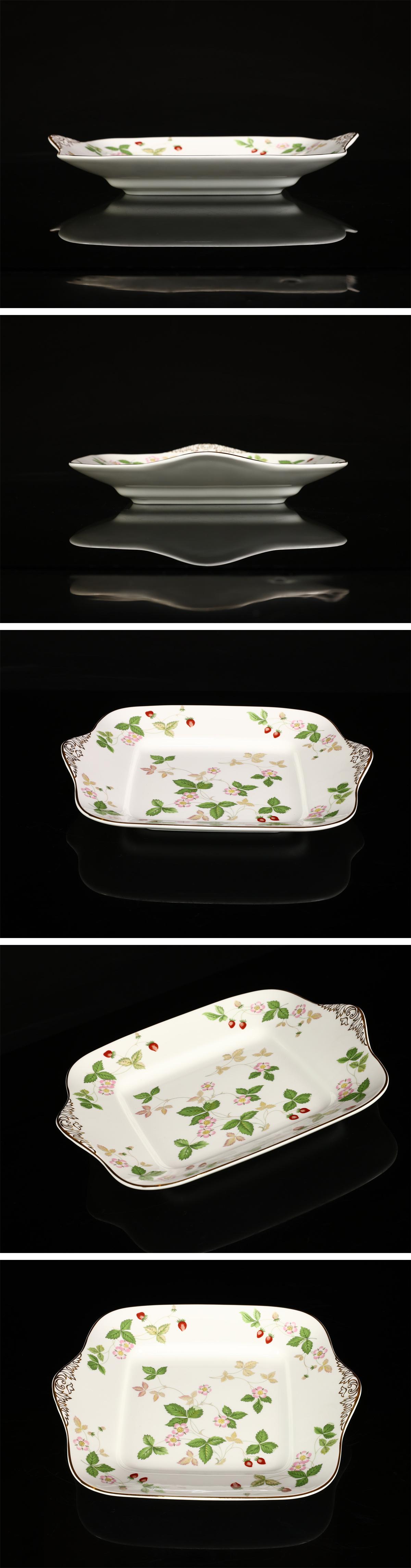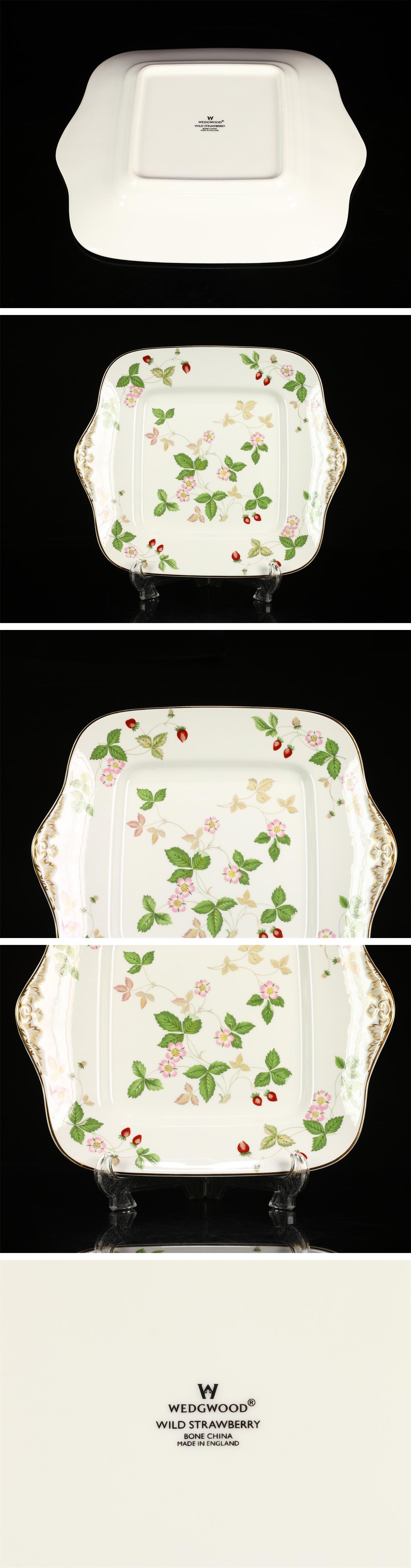 - 久1244 WEDGWOOD 【ウェッジウッド】 ワイルドストロベリー紋 耳付プレート 最大幅27.5㎝ 箱付 未使用品