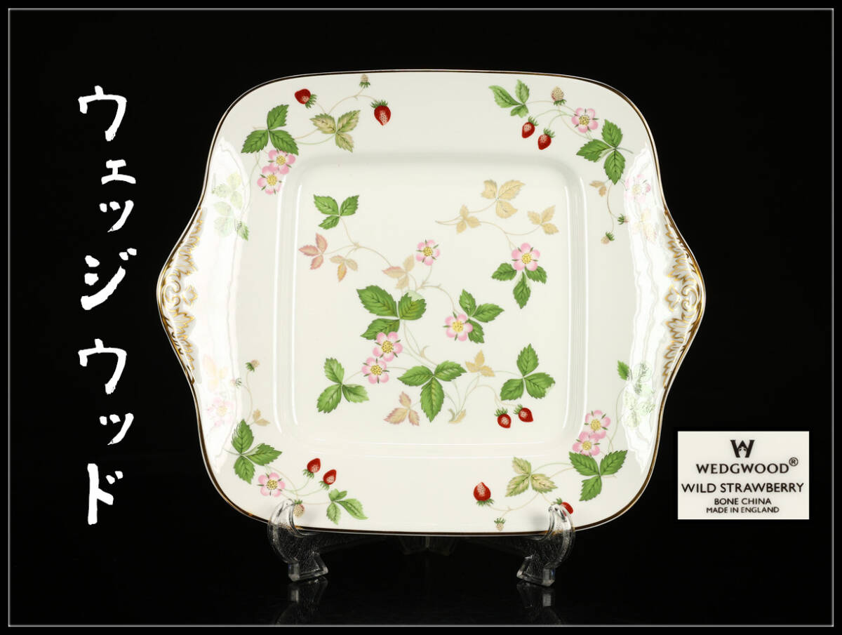 > 久1244 WEDGWOOD 【ウェッジウッド】 ワイルドストロベリー紋 耳付プレート 最大幅27.5㎝ 箱付 未使用品