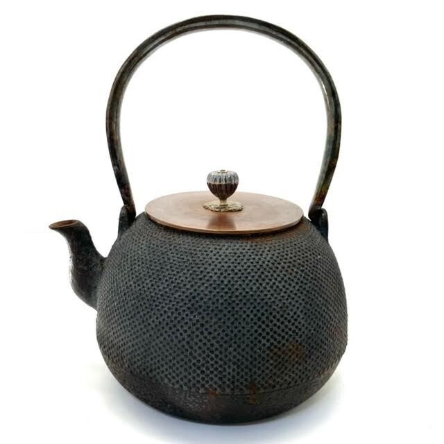 - 仙3 鉄瓶 龍文堂造 在銘 真鍮蓋 茶道具 茶器 急須 骨董 アンティーク
