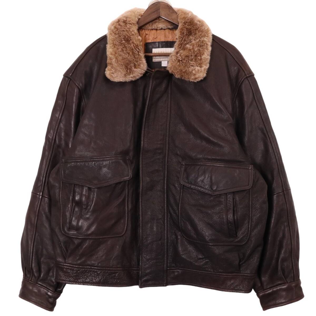 - Coldwater Creek G-1タイプ レザーフライトジャケット ブラウン (メンズ XXL) 中古 古着 A0451