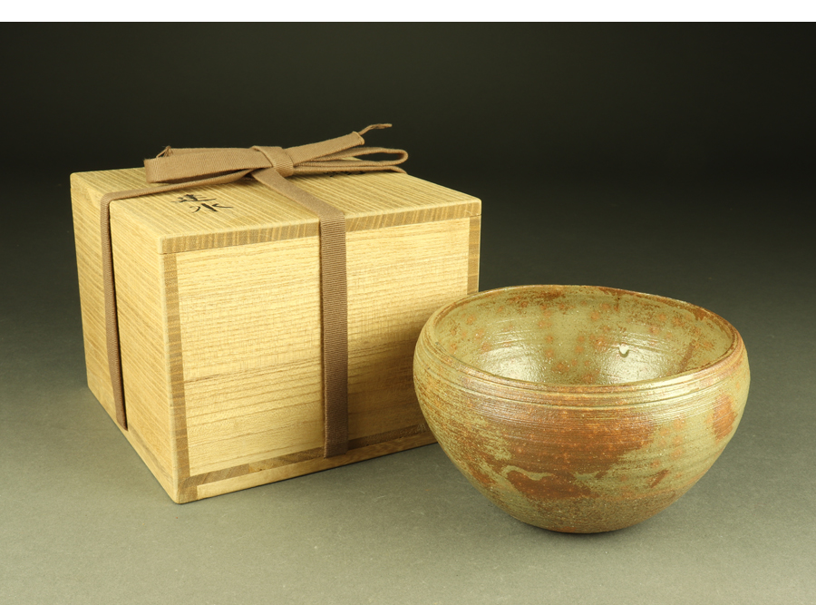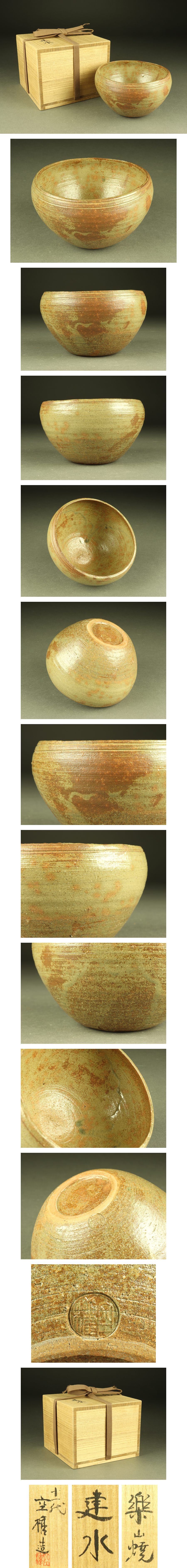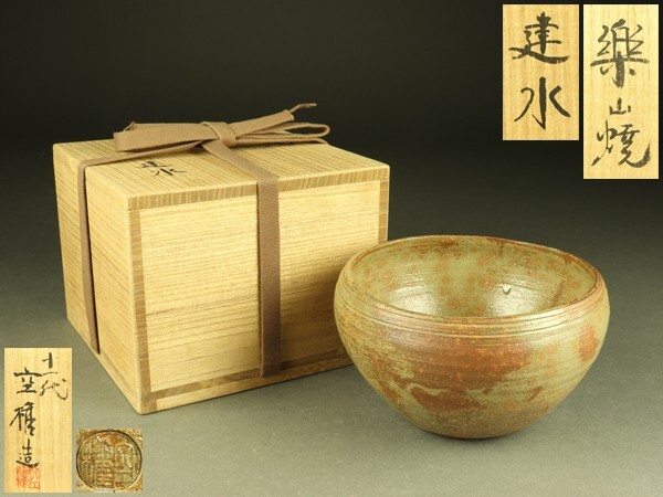 - 【宇】3566 十一代 長岡住右衛門(空権)造 楽山焼 建水 共箱 茶道具