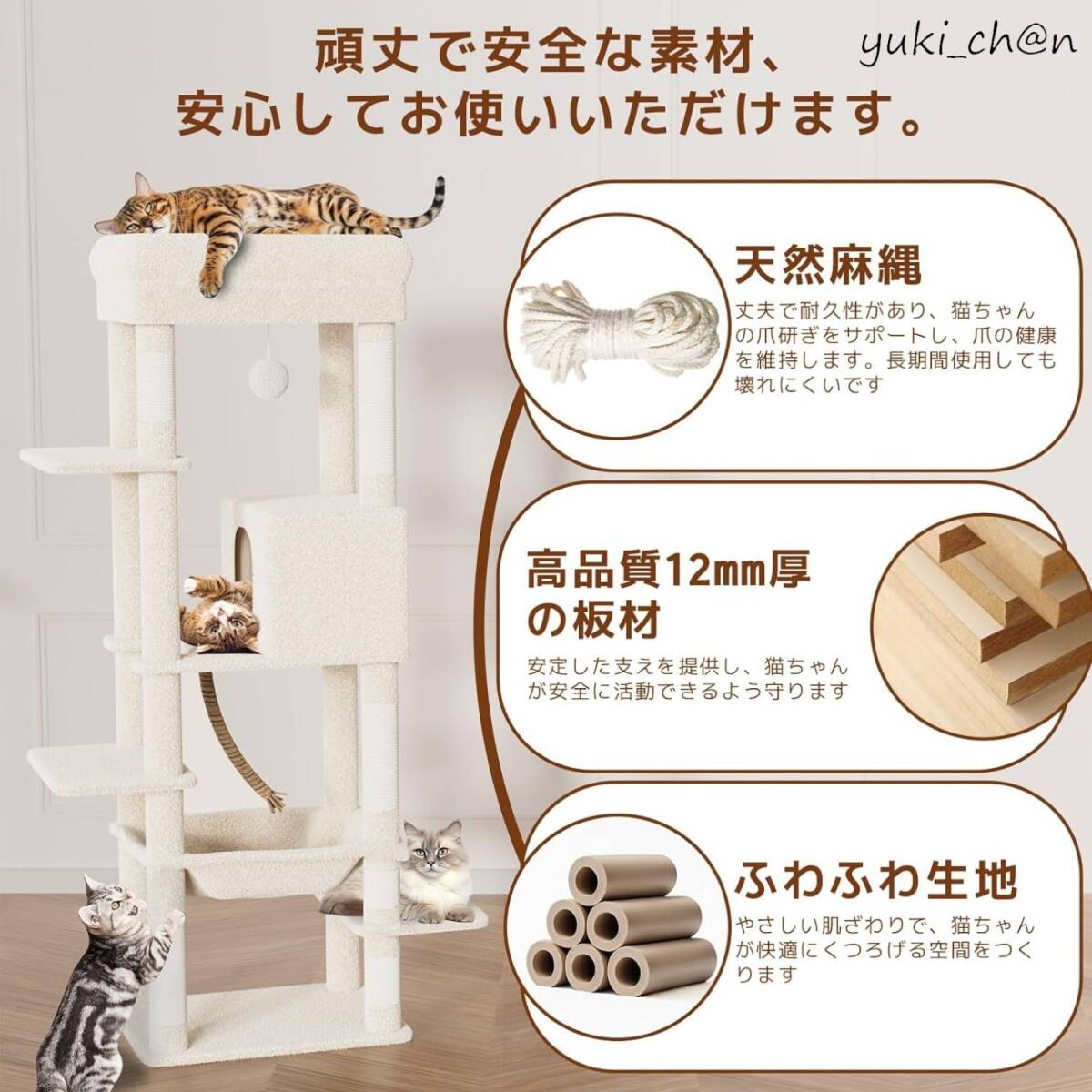 - キャットタワー 据え置き ハンモック 大型猫用 キャットウォーク 爪とぎ 多頭飼い キャットステップ おしゃれ 運動不足解消 ベージュ 150cm