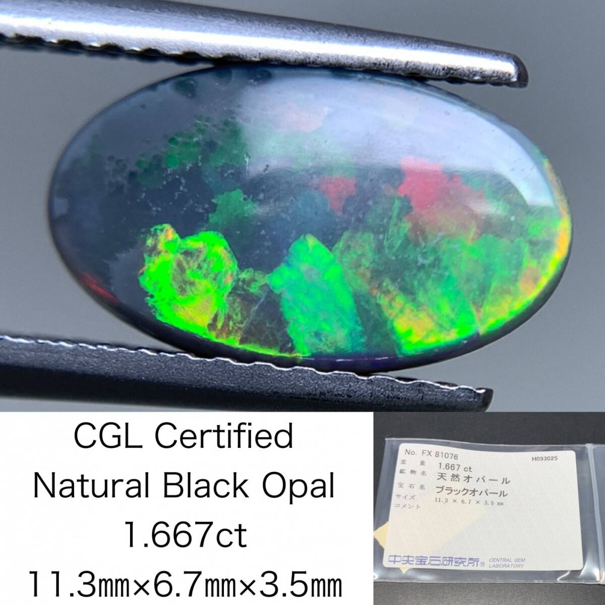 - ブラックオパール 天然 1.667ct 中央宝石ソーティング付き 11.3×6.7×3.5 ルース( 裸石 ) 6873Y