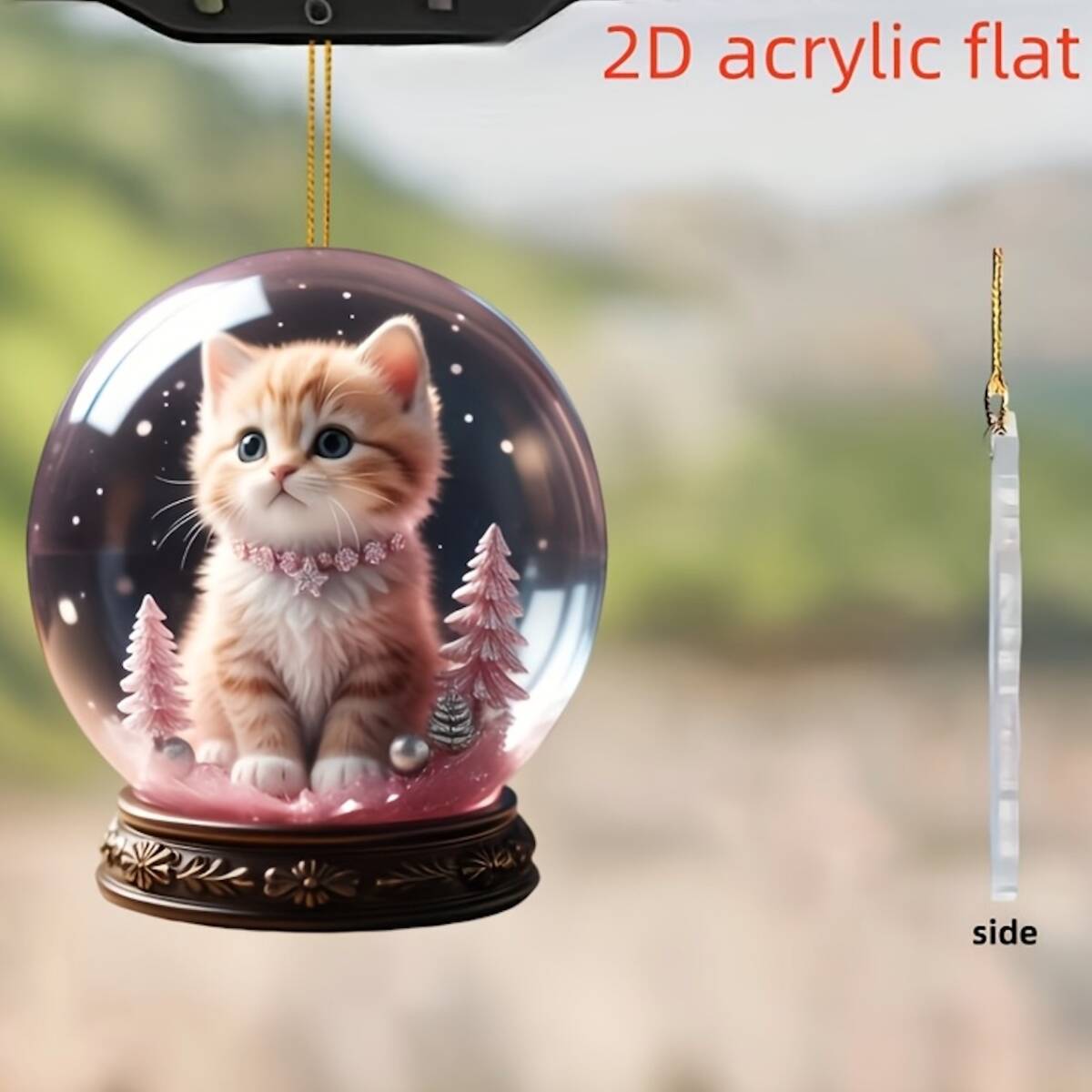 - キーホルダー スノードームの中の猫 キジトラ アクリル 平面 2D ネコ 8cm キーチェーン かわいい 車 鍵 おしゃれ インテリア ねこ t8952