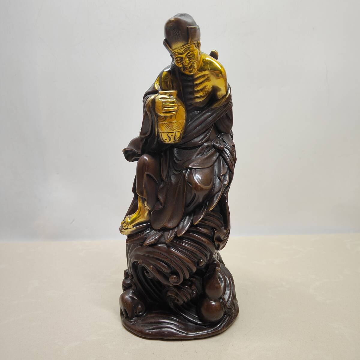 - 『館蔵珍品 紫銅製 塗金 濟公像 置物 賞物』稀少珍蔵品 古賞物 貴重物品 収蔵品 中国古美術 時代物 古董品