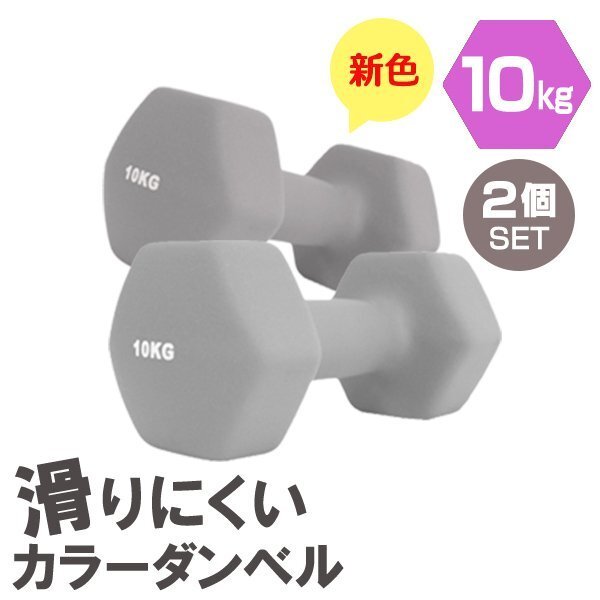 > 【2個セット/ダークグレー】滑りにくい カラー ダンベル 10kg 筋トレ エクササイズ 宅トレ シンプル ウエイトトレーニング ダイエット 新品