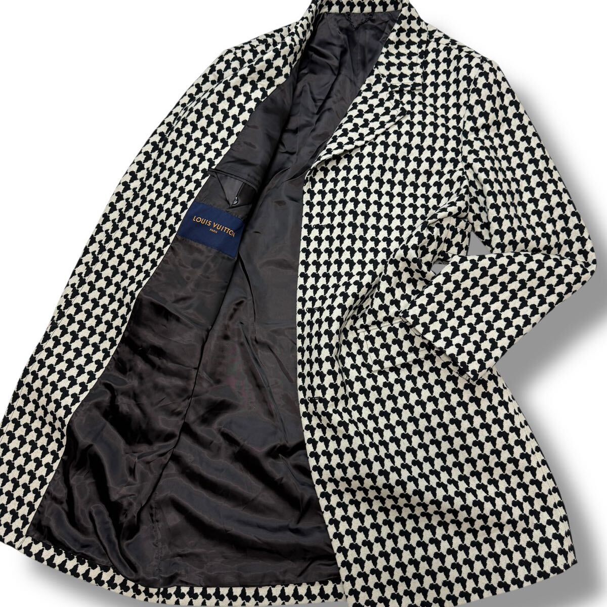 > 1078【極美品 希少XL】現行◎LOUIS VUITTON ルイヴィトン 千鳥格子柄 総柄 チェスターコート ロング丈 ウール メンズ 50 グレー 最高級