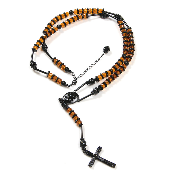 > 【新品】ロザリオ ネックレス ブラック×オレンジ メンズ レディース アクセサリー 十字架 クロス ペンダント 送料無料 220108-15-1