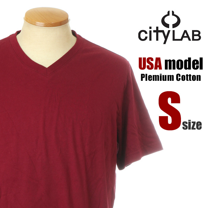 - 【訳あり】【新品】CITY LAB Vネック Tシャツ S マルーン メンズ シティラブ プレミアムコットン 半袖 無地 USAモデル 230524-1-S