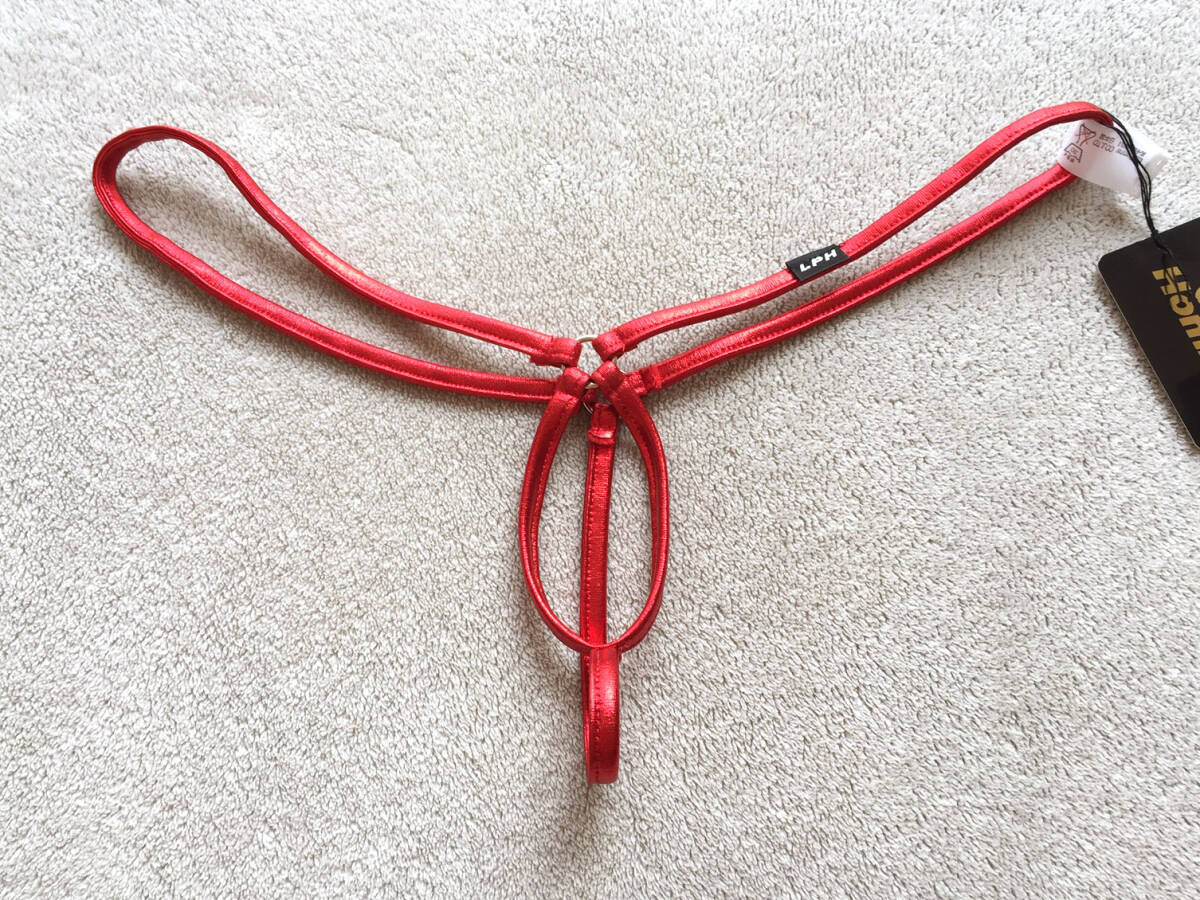 - 【ラ・ポームオム/La-Pomme Homme】丸出し!パイピング・オンリー★メタリック&ストレッチ☆ローライズTバック/赤♪新品/日本製